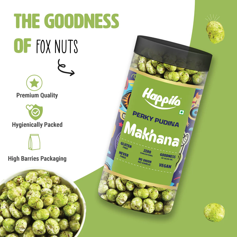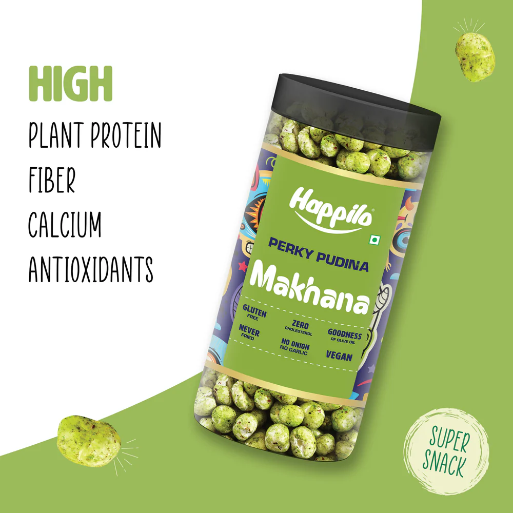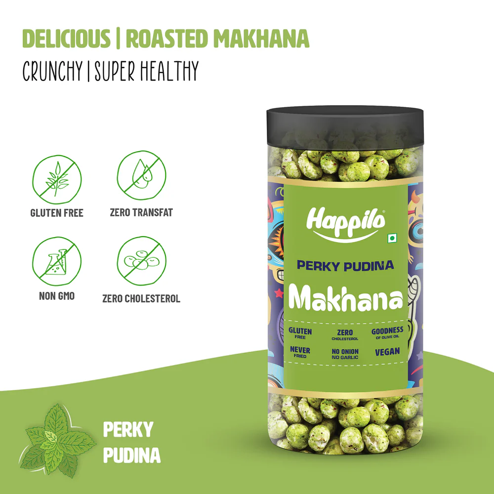Be the first to review “Happilo Makhana Perky Pudina Jar 80g, Roasted Foxnut Healthy Snack Low Calorie Gluten Free and Vegan” Cancel reply